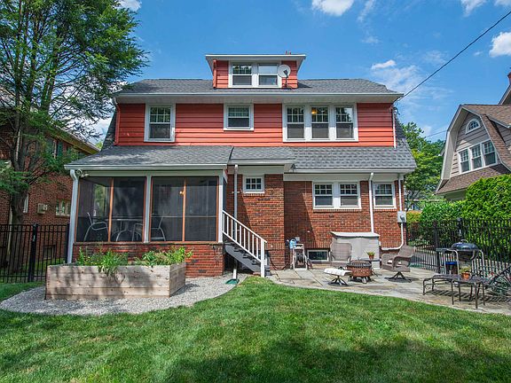 Classic lovingly maintained 4-bedroom, 1.2 bath Montclair Dutch Colonial on a quiet leafy street, with 2-car detached garage, private backyard, convenient to shops, restaurants, and New York transportation. Head up the brick walkway, admiring the mature plantings, and into the foyer featuring leaded glass windows. Make your way through the French door into the spacious living room boasting a palladium arch, crown moldings, oak floors with ribboned inlay, a guest closet and an elegant wood-burning fireplace. To the right you’ll find a light-filled sunroom with ceiling fan and built-ins. Off the living room, there’s an elegant formal dining room, also with ribboned oak floors. From the dining room, head through a a set of French doors into the cozy screened porch with a bluestone floor, and enjoy views of the stone patio, Belgian block driveway, 2-car garage and private, gated backyard. The eat-in kitchen boasts a peninsula, custom cabinets, ceiling fan, a built-in food pantry, a huge butler’s pantry, a powder room and back stairs to the second floor and basement. Back in the living room, take note of the additional leaded glass window as you head up the stairs to the expansive second floor. There you’ll find 4 generous bedrooms, 2 with ceiling fans. In the hall there’s a full bath with hexagonal tile floor, original subway tiles, classic vanity, a tub with shower, and a working laundry chute! There’s also a linen closet in the hall. One of the bedrooms, featuring custom built-ins, is currently being used as a home office, and has access to the third floor and the vast family room with central air, recessed lighting and additional storage. The full unfinished basement has a laundry area (the chute opens directly above the washing machine!), the original soapstone sink, a second refrigerator, utility room, and 3 storage closets, as well as a powder room. The gated backyard sports a stone patio, a level lawn, and outdoor motion sensor lighting. The updated electrical system for this home includes a backup generator and hook-up. New roofs were added to both the house and garage in 2022. This amazing home is just steps from the Walnut Train Station, the Saturday Farmer’s Market, Walnut and Grove Street shops and restaurants, and is a short distance to Bloomfield Avenue and downtown Montclair. Don’t miss this gem!!!