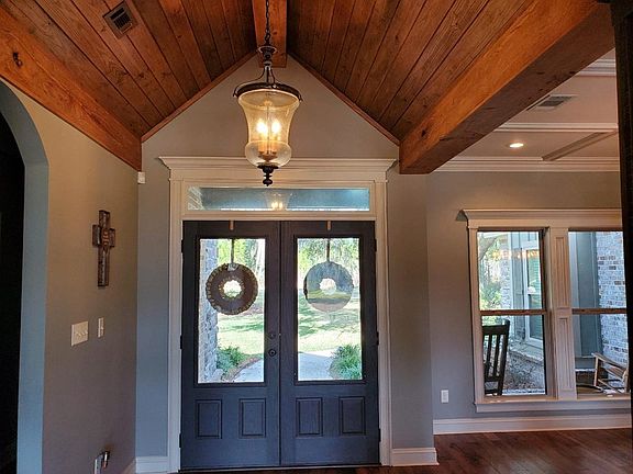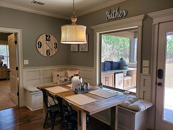 Private, paved drive leads to this stunning property on 50 acres. Home is framed by stately oaks for a true southern feel and entry is striking with stacked stone and double door entry. Interior amenities include: hardwood flooring, high vaulted ceilings and tons of light. Kitchen with custom cabinets, hardwood flooring, stainless appliances. Travertine flooring in baths, and tiled showers. Exterior amenities include: covered patio/back porch with outdoor kitchen/grilling area. Wired 24x36 workshop. Generator has been installed. Acreage has 5 year planted pines and fishing ponds. Excellent hunting and nature lover's paradise. Call for additional information.