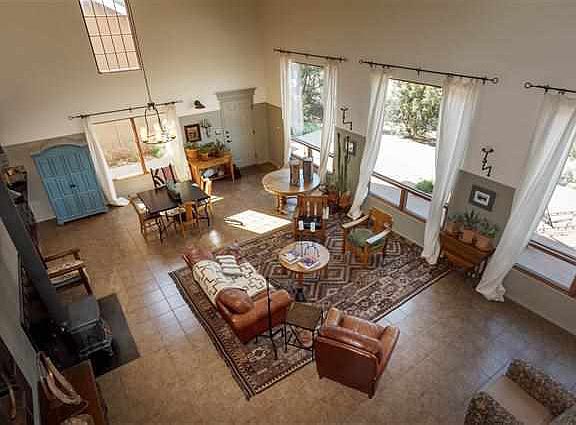 Beautiful, one of a kind country home. Light and bright open floor plan, located between Glorieta and Pecos with expansive views of Glorieta Mesa. 61 Via Gertuditas offers spacious living- 2 story great room with 9ft ceilings in rest of house, kitchen with granite counter-tops, stainless appliances, and tiled backsplash. 2 large bedrooms, 2 baths each with walk-in showers/ pedestal sinks. Radiant in floor heat, supplemented with wood burning stove and significant solar gain. Large upstairs living space or open walled 3rd bedroom. Pella windows throughout. Shaded, relaxing breezeway separating a finished 2 car garage. 1.24 acres fully fenced and landscaped lot. Perennial flowers and bushes, raised garden bed, healthy pinons and junipers. Environmentally friendly pirana septic system, fire sprinkler system. Front paved deck, gravel fire break, 5 person hot tub/ spa. Plenty of room for RV storage. Cable and internet ready. Fabulous night stars. All this, ~25 minutes from Santa Fe.