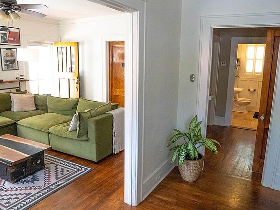 Come see this beautiful 3 bed 2 bath bungalow, two blocks from downtown, Newnan! With original hardwoods throughout the house, and a fireplace from the 1930s in the Master Bedroom, this house has a ton of charm. There is a 2nd bedroom on the main level with the master, and then an upstairs lofted 3rd bedroom. The house is on a fenced in .4 acre lot, so backyard is huge and perfect for kids, family and friends to gather. There is a driveway off of St. Clair Street with room for two cars, and a gated entrance to the back yard. Enjoy the outdoor spaces, as you have both a front porch, and screened in back porch. Reach out if you are interested in touring for this rental available 9/1/2025.