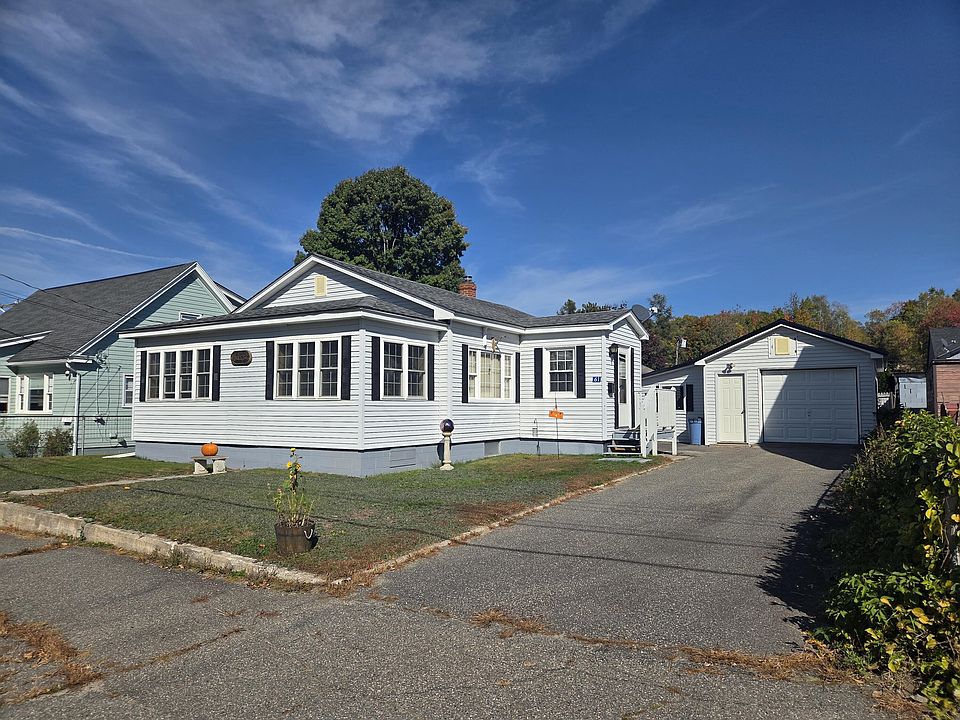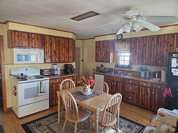 A standout feature is the detached oversized one-car garage with a durable metal roof, providing ample space for your vehicle, snowmobiles, or ATVs—ideal for adventure seekers. The level backyard offers room for pets or outdoor activities, and the paved driveway and heat pump add comfort and convenience.