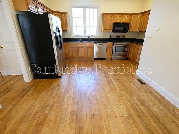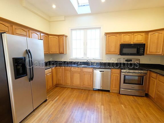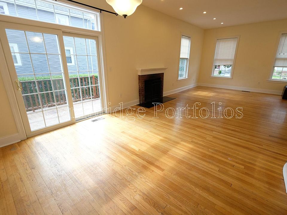 Gut renovated large 3000 sq.ft. 3 levels 5 bedroom/3.5 bathroom townhouse near Waverley Square in Belmont. 1st level: Huge open space layout living room with fireplace and dining area with glass sliding doors to private deck. Large kitchen with granite counter tops, stainless steel appliances and sky window. Half bathroom. 2nd level: 1st large bedroom with walk-in closet. 2nd large bedroom with walk-in closet and half bathroom. 3rd smaller bedroom with walk-in closet. Full bathroom with double sink. 3rd level: 4th large bedroom and huge 5th bedroom with walk-in closet. Large full bathroom with double sink and jacuzzi tub. High ceilings. Hardwood floors. Central AC. Laundry and additional room for storage in the basement. 3 cars tandem parking on the driveway. Short walk to bus line to Harvard Square and commuter rail stop to Porter Square and North Station in Boston. Water, landscaping and snow removal included. Pets ok. Available Now.