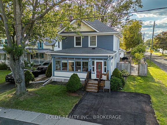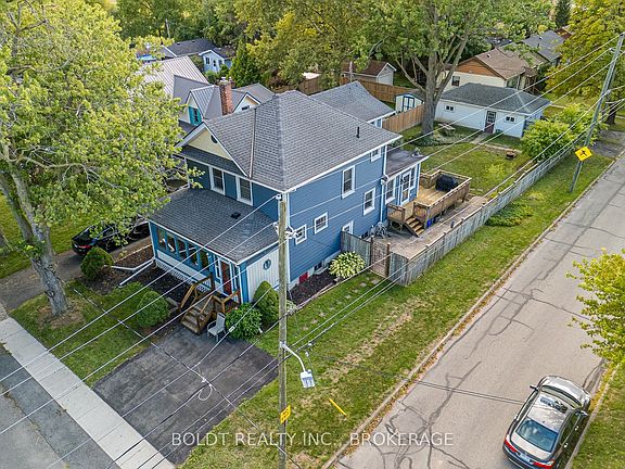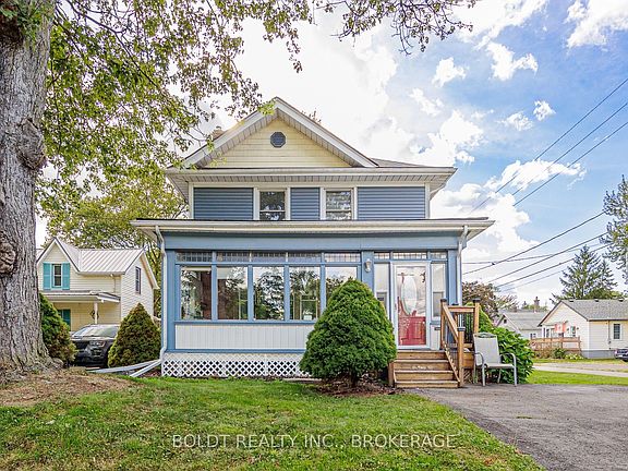 Turn of the Century CHARACTER Two storey Home with 8 1/2 foot ceilings, LARGE Rooms, Leaded Glass Accent Windows, Spacious Front Porch with scenic WATER VIEWS of the Welland Canal. Watch the ships go by! All of the original hardwood floors have also been REFINISHED nicely! Updated exterior siding and Thermal windows make for a warm, cozy, draft free home. All the wants are here! Quiet street with low traffic, comfortable spacious rooms , clean and bright, updated nicely and well maintained. Main floor 2pc & Main Floor LAUNDRY & FAMILY ROOMS offer convenience so you will never need to finish the basement. Patio doors to a wonderful wrap around deck. Gas FP in Living Room and 2window seats. Four Bedrooms with ample storage. Wooden staircase to second storey has been lovingly refinished. Outdoor living features acfully fenced back yard provides privacy and a safe space for kids and puppies. Two separate paved drives allow 3 cars parking plus A long detached garage also has new siding and doors and can fit two cars long. The newer CUSTOM DECKING has two access doors from FR and Kitchen and a dedicated BBQ area and the yard has mature shade trees and low maintenance Perennial gardens. Location is ideal- close to schools, shopping, university, shopping mall, downtown and major highways. This home has character plus modern amenities the best of both worlds