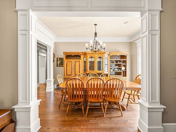 Move in ready. Built in 2023. Stunning, elegant home featuring 12-foot ceilings, gleaming hardwood floors, and exquisite crown molding and exquisite door trim throughout. The open-concept great room seamlessly blends living and formal dining areas, anchored by a wood-burning fireplace. A chef’s kitchen with double ovens, trash compactor, and granite countertops opens to a spacious breakfast area. The luxurious and very large principal suite offers a private seating area, while bedroom 2 features en-suite bathroom and bedrooms 3 and 4 feature a Jack-and-Jill bathroom. Custom shutters, central and in-floor vacuum, and high-end iron exterior doors with screens add sophistication. This home backs up to green space on a planned gated street, offering features related to design, convenience, and safety. Additional Features: • Extra-large laundry room with sink • Alarm system and exterior cameras on all sides • Attic with stair access, partially floored for storage • Granite countertops throughout • Iron exterior doors with screens