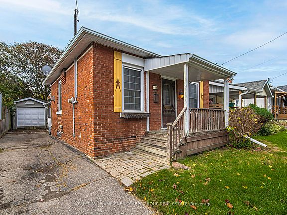 Cozy, well-maintained bungalow capturing comfort and character just steps from downtown Bowmanville. This 2-bedroom home, with a flexible den or office, features hardwood flooring throughout the main living areas and kitchen.Thoughtful updates include a refreshed kitchen and bathroom (approx. 2013), main-floor laundry (2014), and upgraded mechanicals such as furnace, air conditioning, and plumbing. The home also offers a single-car garage, updated windows, and convenient wall-mounted units for added comfort.Enjoy a private backyard with a large shed, ideal for storage, hobbies, or workshop space. Perfectly located within walking distance to shops, restaurants, parks, and schools, this property provides easy everyday living in one of Bowmanville's most charming neighbourhoods. Click the Realtor link for feature sheet, floor plan and you tube video