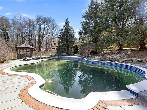 The Captain Richard Johnson house, c1792, is sited on over five acres of land and boasts a Federal style brick home with over 4000 square feet of living space. This magnificent house has been lovingly restored by the current owners during their tenure. The main house has a total of 13 rooms including five bedrooms, updated kitchen, seven fireplaces (only one working), wide pine floors and central hall with grand stairway which has museum quality reproduction wallpaper in the 1810’s style. The carriage house is built over the four car garage and has a full bathroom and three finished rooms for office use. Capping off this unique property, you will find a gunite pool with bluestone decking which overlooks the gently sloping back yard.