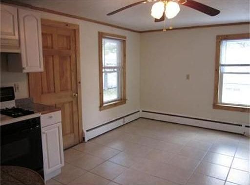 VERY CLEAN 3 bedroom with off street parking and a yard! This is a very affordable rental - clean and neat with a private front porch and large backyard. Tiled oversized eat-in kitchen includes a dishwasher. The bedrooms have wall-to-wall carpeting and large closets. Washer/dryer hookups for a stack IN the unit. Ceiling fans in all the rooms.Off-street parking and close to the highway so you won't need a thing! Newer paint, clean carpets, newer floors and windows and lead certified!