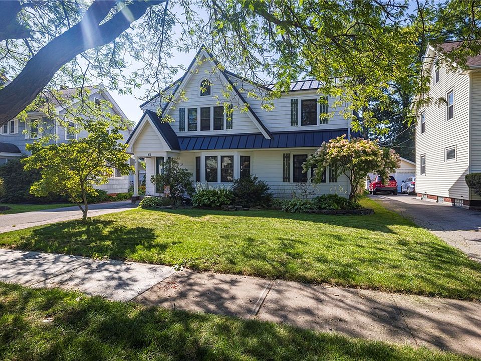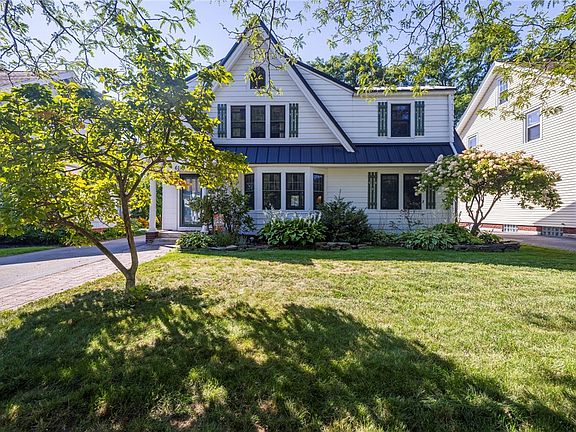 Classic Storybook Irondequoit Colonial on a Sweet, Tree-Lined Street with Sidewalks! CHARACTER AND CHARM SHINE in this beautifully maintained 3/4 bedroom, 1.5 bath home: Magnificent HARDWOOD FLOORS, crown molding, gumwood trim, glass doorknobs, and built-in shelving and cabinetry create a timeless look throughout. Light-filled and welcoming, the home features a well-designed floor plan with lots of windows. The spacious front-facing living room boasts a DECORATIVE BRICK FIREPLACE with gas line, glass-front bookcases, and an elegant arched entry into the formal dining room. Perfect for entertaining, the dining area includes a ceiling fan and French door that opens to the backyard, letting in lots of sunshine. The kitchen is a highlight-well-appointed with stainless steel appliances, including a JENN-AIR GAS STOVE, granite countertops, pantry, recessed lighting, and room for a table or island. SO MANY SURPRISES on the first floor! A versatile bedroom/office/family room, a coveted powder room, and a cozy three-season ENCLOSED PORCH—ideal for relaxing or enjoying your morning coffee. Upstairs, the hardwood floors continue into the fabulous second level. The large and comfortable primary bedroom offers a generous WALK-IN CLOSET, while the second bedroom also features ample closet space. A tandem bedroom provides flexible options as a home office, dressing room, or nursery. The remodeled full bathroom impresses with a double-sized UPDATED GLASS SHOWER, dual shower heads, and stylish tile surround. A full, clean, and dry basement adds excellent storage or workout space and includes a washer and dryer for your convenience. And there's more to love! OUTSTANDING MECHANICALS and updates throughout: a stylish black metal roof (2022), new furnace and central air (2023), hot water tank (2021), updated electric panel, and glass block windows. Don't miss this one-it's got everything! Super location close to schools, shopping and expressway. First showing is Fri Sept 5th at 10am. Open house is Saturday, September 6 from 12-1:30. Delayed negotiation form is on file. Please submit all offers by 12 pm on Tuesday, September 9.