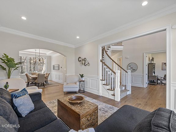 Welcome to The Estates at Bamm Hollow, one of Lincroft's most prestigious luxury communities. This Toll Brothers home offers 5 spacious bedrooms, 4.5 bathrooms, and a floor plan designed for both everyday comfort and elegant entertaining. Floor-to-ceiling windows bring in an abundance of natural light, highlighting the open layout and soaring ceilings. The chef's kitchen features premium appliances, gourmet finishes, and flows seamlessly into the living and dining areas. The spa-inspired primary suite includes custom California closets and luxurious details throughout.
