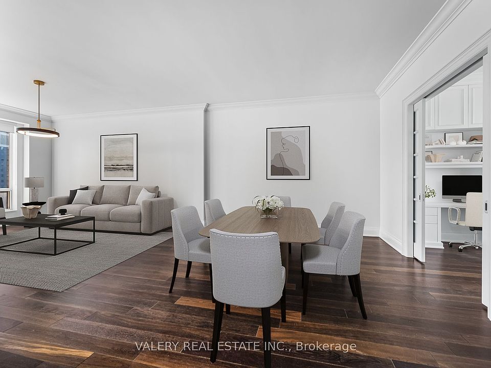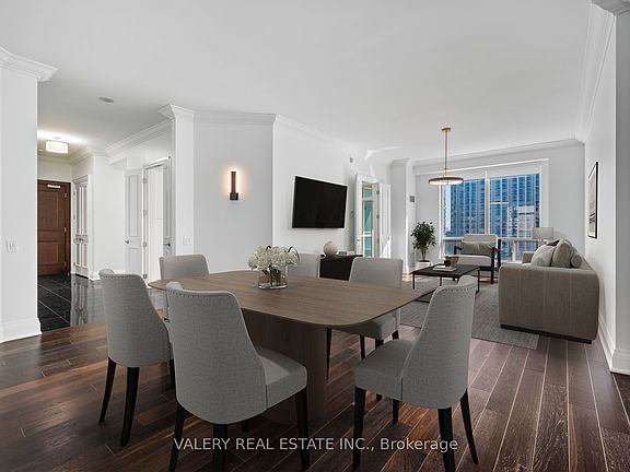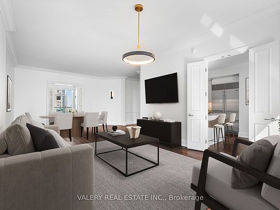Promotion: 1-month rent free , 1 valet parking spot and 1 locker free for 1 year term. Step into 1,900 sq. ft. of elegance and panoramic views of Yorkville. Where 10 ft ceilings and floor-to-ceiling windows flood the home with morning light. The grand foyer leads into a spacious open-concept living and dining area, designed for effortless entertaining and everyday ease. The sleek modern kitchen anchors the main space with premium finishes and seamless flow. A versatile den can serve as a home office or easily convert into a third bedroom. Down the hall, the primary bedroom reveals a tranquil escape with a spa-inspired ensuite, while the second bedroom offers generous comfort. Everyday luxury continues with ensuite laundry, a second full bath, and thoughtful details throughout. Beyond the suite, the building elevates the lifestyle with valet parking, 24/7 concierge, fitness centre, theatre, party room, EV charging, pet-friendly and my favourite touch, complimentary morning coffee in the lobby. In the heart of Torontos most coveted neighbourhood, this residence offers not just a home, but the Yorkville experience elevated, refined, and unforgettable.