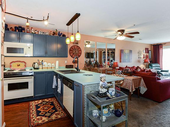 Cottage Charm with this condo updated with new pendant lighting, paint, kitchen sink, painted cabinets, laminate floors.You can access this condo by the ramp at one end of the building or by the stairs. Wonderful big covered patio on back. Some of the furniture will convey with condo if wanted and all of the appliances stay. Wonderful condo that feels like Home! Short walk to Marina for fishing. Easy to Show!