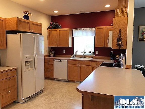 Great location, between John Wayne Marina and sunny downtown Sequim. Close to Discovery Trail, QFC, and all that Sequim has to offer. Move in ready home has 1930 SF, 2BR + 2 den/office rooms = 4 separate rooms! King sized master with large soaking tub, separate shower, walk in closet and custom storage. Lg office/den with french doors. Great room has 9' ceilings, large viewing windows and sliding glass doors to private fenced back yard. Covered front entry & covered patio in rear with low maintenance yard.