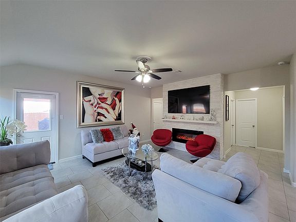 Welcome Home! This 3 bed 2 bath home features a beautiful stone decorative wall & mock fireplace in living room, extended patio slab, huge primary bath & walk in closets, open concept perfect for entertaining. This resale feels like new ! Immaculately maintained interior & exterior. Great location towards back of the community for extra privacy. CALL FOR YOUR appointment today. Hablamos espanol.