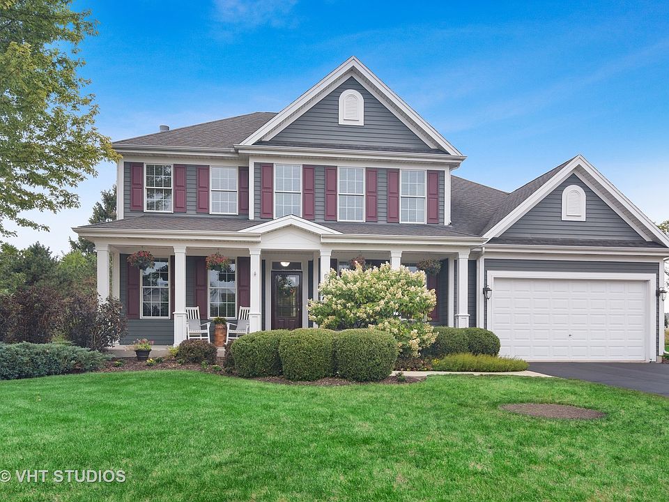BLACKBERRY CREEK SUBDIVISION!! FIRST TIME ON THE MARKET!!! Looking for a meticulously maintained, delicately lived in, one-owner home with backyard privacy and a grass park out your front door and on a corner lot? Look no further and make this spacious, custom-built home by the prestigious Bellefleur Homes, your new place to call home. This is a traditional home. The front exterior has a beautiful front porch. The foyer is accompanied by an office and a dining room with a tray ceiling. The dining room leads to the butler's pantry that connects to the spacious kitchen with custom cabinetry with a pantry. The dinette exits to a patio and opens into the over-sized family room with a beautiful cultured stone fireplace with custom-built bookcases on each side. The entire first floor is very roomy with the 9 foot ceilings. Leading to the second floor is a winding stairway that leads to the beautiful main bedroom with three additional bedrooms. The main bedroom has a tray ceiling and awesome walk-in closet and the bath has a skylight to brighten up your mornings!!! The other bedrooms offer walk-in closets and share a full hall bathroom. This home offers a full deep-pour basement with room to customize with rough-in plumbing for a bath. Finally, the garage is a three-car tandem with 10.5 foot tall ceilings. This home is freshly painted, new water softener/rented, new water heater, new granite counter tops, and new main bedroom shower door. A real must-see. Minutes from I-88, METRA, and Randall Road restaurants and shopping. Enjoy the quietness and beautiful nature right out your back door.