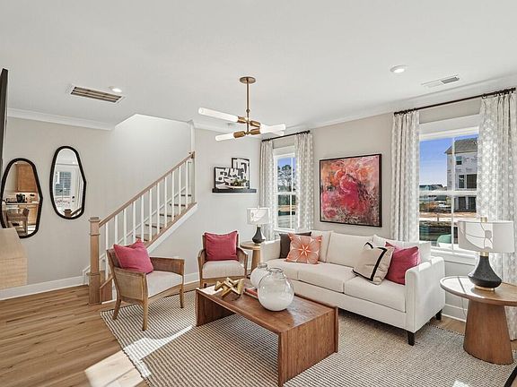 The WILSON is a spacious 3 BR/2.5 Bath townhome with attached 2 car garage. Open floor plan with kitchen, dining & family room on the first floor. The gourmet kitchen includes a built in wall oven and microwave, large island, pantry, pendant lights, & quartz counters. EVP throughout the first floor. Fireplace. Oak tread staircase leads upstairs to a loft. Nice space for additional entertaining area or home office. The second floor also includes the primary suite with tiled shower and large walk in closet. Plus, Two additional bedrooms, full bathroom, and laundry room. Dropzone at garage entry. 9ft ceilings on all floors. Other features include: tankless gas water heater, Ring doorbell, Schlage Front Door Lock, electric car charging outlet, whole house surge protector. The community features a 15 acre lake, pool, clubhouse, parks, and trails!