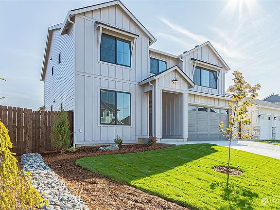 Live large in the Whidbey Modern Farmhouse plan. 3 beds, 2.5 baths, large rec room, loft area, main floor den and 3-car tandem garage. Well-appointed amenities including slab quartz kitchen counters, full backsplash, stainless appliances, custom cabinets, extended luxury vinyl plank floors, upgraded carpet, fireplace & spacious laundry/utility room. Owner's suite features soaking tub, shower, dual sinks and large walk-in closet. Front landscaping, sprinklers and a built-in patio cover. ENERGY STAR certified and HERS rated for lower monthly bills. High Eff Heat Pump, advanced framing and air sealing, A/C, Heat Pump Water Heater, Smart wiring and 2-10 Home Warranty Included! Builder offering 3% financing offer for a limited time only.
