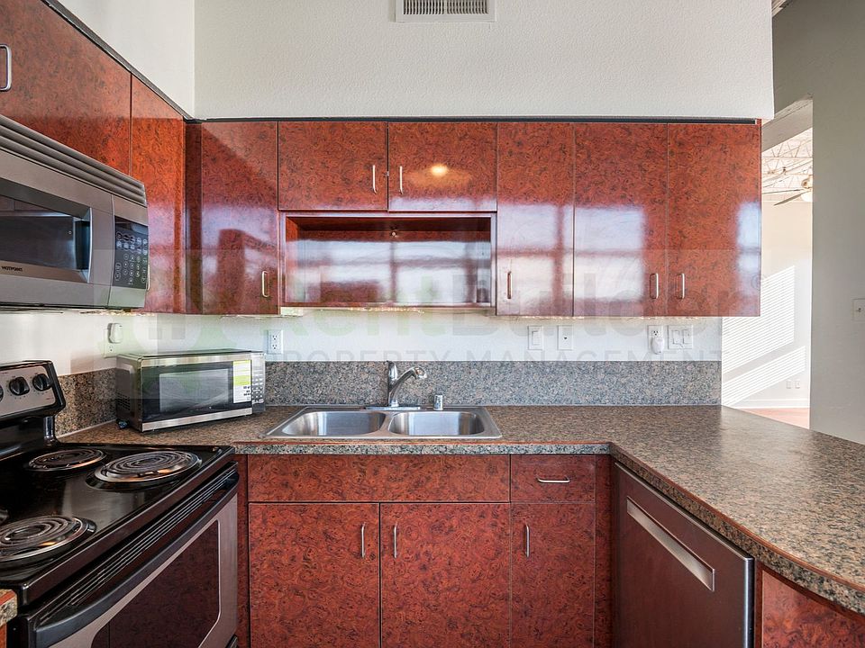 Here it is, an Over-sized Floor Plan in the Modern 610 Central Downtown Condominiums! Super Spacious Layout offers Plenty of Natural Light, High Ceilings, Space for Dining, two Living/Study areas, Sleeping Quarters, a Spacious FULL Bath, Your Own Laundry Room with Stackable Washer and Dryer, the Possibilities are endless. Modern Appliances and More Counter/Cabinet Space than you can imagine. All Appliances Included. Water and Trash Included. This is a must see! Easy access to public transportation, theater, dining, night life and all the sites of Historic Downtown & Old Town Albuquerque. Schedule your viewing today! Small pets 25 lbs. or under are allowed.
