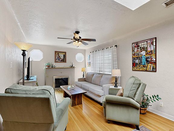Looking for Nob Hill/ UNM area? Come see this charming 1 story 4 BR, 1.75 bath,1 car garage home w/ mature trees & spacious walled backyard. Oak hardwood & slate-like tile floors. Space for large table in gallery like dining room. Living room has gas log fireplace. Primary BR has remodeled bath with 2 sinks and walk in shower. Airy kitchen features seating area, granite dining bar and double doors to an outdoor deck. The large backyard has storage room adjacent to garage, Tuff shed and all season ''turf'' for year round green.
