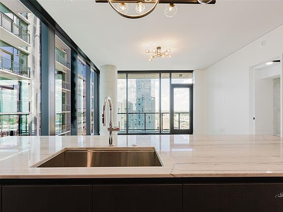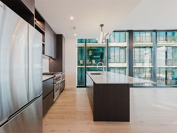 Refrigerator, Washer/dryer, Ceiling fans with lights in the bedrooms, along with modern light in the living room and in the kitchen will be installed for the tenants prior to move in date. Be the first to live in this brand-new larger 2 Bed / 2 Bath residence at The Modern! This stunning condo features hardwood floors throughout, floor-to-ceiling windows with abundant natural light, and a sleek chef's kitchen with Wolf gas range, custom cabinetry, and under-cabinet lighting. The spacious primary suite includes a dual vanity, walk-in closet, and seamless glass shower. Residents enjoy resort-style amenities including a pool deck with outdoor TVs, fitness center, yoga/Pilates room, multiple lounges and event spaces, conference rooms, and dedicated dog facilities. One reserved garage parking space included. Located in the heart of Downtown Austin just off Rainey Street and across from Hotel Van Zandt you're steps from Royal Blue, Emmer & Rye, Banger's, Cantina 512, and all of Austin's premier nightlife and dining. Walk to the Hike & Bike Trail, The Four Seasons, and everything downtown has to offer!