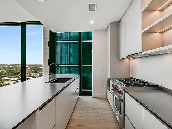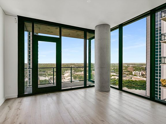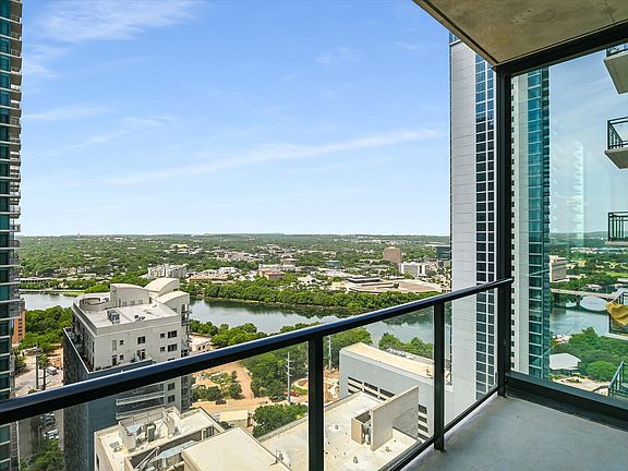 Be the first to live at The Modern Austin Residences in this refined 2 bed, 2 bath, 1,127 sq ft condo with stunning southwest views of Lady Bird Lake. Floor-to-ceiling windows and a private balcony showcasing lake and skyline views, bringing natural light into every corner. The kitchen features dark quartz countertops, Bosch appliances, and a 36" counter-depth refrigerator. Additional highlights include a full-size Electrolux washer and dryer, hardwood floors, and one reserved parking space. Residents enjoy over 19,000 square feet of curated amenities across three levels, including a 25-meter pool and spa, fitness center and yoga studio, indoor and outdoor lounges, dog park and wash station, business center, sky lounge with catering kitchen, and 24/7 concierge service. Located in the rapidly evolving Rainey Street District, The Modern offers unmatched walkability to Austin's best restaurants, bars, entertainment, and trail access along Lady Bird Lake.