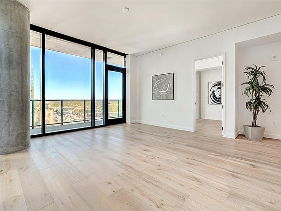 This sleek 2-bedroom, 2-bath condo at The Modern Austin Residences puts you right where you want to be surrounded by skyline views, great food, and all the energy of downtown Austin. With 1,127 sq ft of thoughtfully designed space, this home features floor-to-ceiling windows (auto shades coming soon) and a private balcony that capture stunning north and northeast views of the city, UT Tower, and the green East Side. The kitchen is clean, modern, and ready for your touch complete with quartz countertops, Bosch appliances, and a spacious refrigerator. Hardwood floors flow throughout, complemented by smooth concrete accent walls for an urban vibe. You'll love the convenience of in-unit laundry, a spa-like primary suite, and reserved parking. The Modern offers over 19,000 sq ft of next-level amenities think 25-meter pool and spa, fitness and yoga studios, indoor/outdoor lounges, dog park and wash, business center, and sky lounge with catering kitchen all topped off by 24/7 concierge service. Live steps from Austin's best restaurants, bars, and entertainment, with easy access to the trails along Lady Bird Lake. This is downtown living done right.