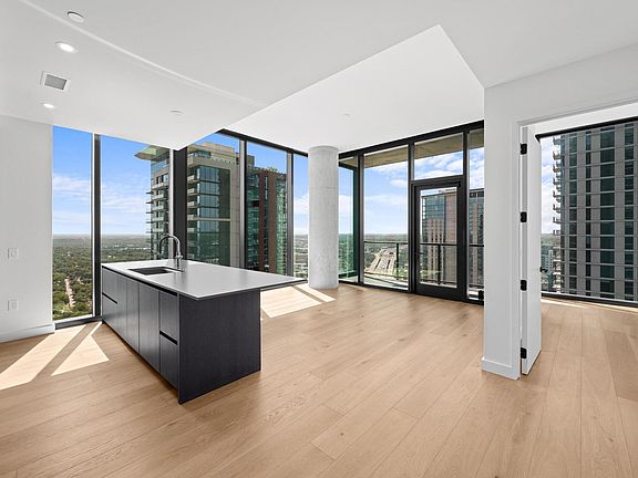 1st month free with qualified application! Be the first to experience modern luxury in this brand-new 3 bedroom, 3 bathroom residence at The Modern Austin, perched on the 32nd floor with breathtaking views of Lady Bird Lake and Downtown. With over 1,835 sq. ft. of interior living and two private balconies totaling 148 sq. ft., floor-to-ceiling windows frame stunning sunsets and sweeping cityscapes. The thoughtfully designed kitchen features dark quartzite countertops with a full-height backsplash, custom Italkraft cabinetry, and a premier Wolf/Sub-Zero appliance package including a Sub-Zero refrigerator, Wolf six-burner range and microwave, and Bosch dishwasher. The elegant primary suite offers a spa-like retreat with a walk-in shower clad in designer tile and a dual vanity with backlit mirrors. Additional highlights include wide-plank hardwood flooring and reserved parking. Residents enjoy more than 19,000 sq. ft. of resort-style amenities across three levels: a 25-meter pool and spa, indoor and outdoor lounges with private dining areas and catering kitchen, fitness center and yoga studio, dog park and wash station, board rooms and business center, sky lounge, guest suites, and 24/7 concierge service. Perfectly positioned in the vibrant Rainey Street District, The Modern places Austin's premier dining, nightlife, and the scenic Lady Bird Lake Trail right outside your door. Here, sophistication meets convenience delivering the ultimate in downtown living.