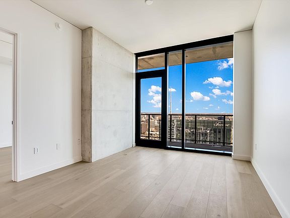 Be the first to live in this thoughtfully designed north-facing residence at The Modern with striking city and Capitol views. Featuring floor-to-ceiling windows, covered balcony and open kitchen-living concept. The kitchen comes equipped with light quart countertops, large center island, Italkraft cabinetry, Wolf gas range and microwave, and Bosch dishwasher. The primary bath showcases a light quartz dual vanity countertop with floating lighted mirrors and spacious walk-in shower. Additional highlights include hardwood + tile flooring throughout and one reserved parking space. Residents enjoy over 19,000 sq ft of curated amenities across three levels, including a 25-meter pool and spa, fitness center and yoga studio, indoor and outdoor lounges, dog park and wash station, business center and conference rooms, sky lounge with catering kitchen, and 24/7 concierge service. Perfectly located in the Rainey Street District, The Modern offers walkable access to Austin’s best restaurants, nightlife, and trail access along Lady Bird Lake.