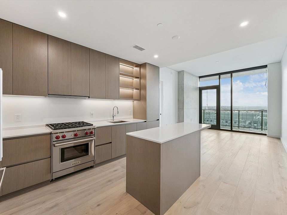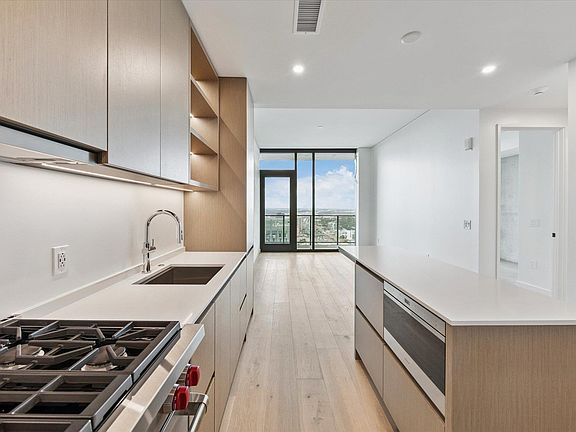 Brand-new residence in one of downtown Austin's premier new towers. This north-facing 2-bedroom, 2-bath home offers sweeping views of DKR Stadium, the UT Tower, the Capitol, Lady Bird Lake, and the downtown skyline. Floor-to-ceiling windows fill the space with natural light, while wide-plank flooring and designer finishes create a modern, refined feel. The open kitchen features Wolf gas cooking, built-in lighting, and ample storage. Enjoy access to over 19,000 sq. ft. of resident amenities across multiple levels, including a 25-meter lap pool and spa, fitness center, yoga and pilates studios, dog park and wash station, indoor and outdoor lounges, business center, and a sky lounge with catering kitchen. A 24-hour concierge provides added convenience. Located in the vibrant Rainey Street District, this home offers immediate access to Austin's top restaurants, entertainment, and outdoor spaces, including Waterloo Greenway and the Lady Bird Lake Trail. Parking spot available in garage for $250 / MO.