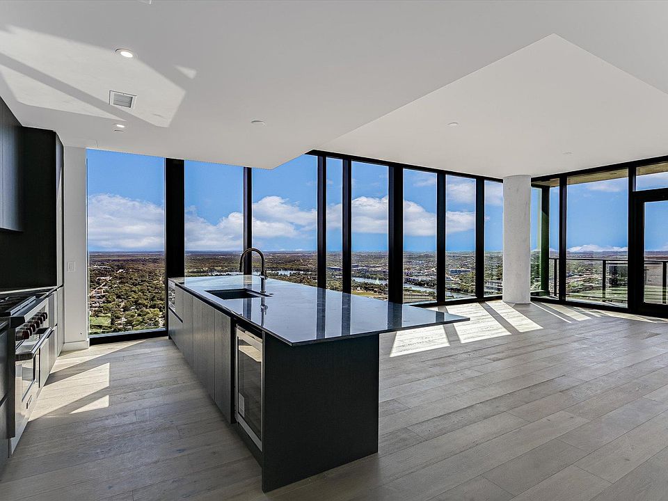 Experience luxury in this southeast-facing 3-bedroom, 3-bathroom residence on the 45th floor of The Modern Austin Residences. This light-filled home features floor-to-ceiling windows with stunning city views, 10’4” ceilings, wide-plank white oak floors, custom Italkraft cabinetry, Wolf & Sub-Zero appliances, and dark quartzite countertops. The Modern Austin offers 19,000 square feet of amenities, including a 25-meter lap pool, spa, indoor and outdoor lounges, private dining, grilling areas, fitness center, yoga studio, business center, sky lounge, dog park, and 24/7 concierge. Located in the vibrant Rainey Street District, steps from new restaurants, bars, and the upcoming 1 Hotel Austin, it’s also near the Waterloo Greenway’s Hike & Bike Trail, blending urban elegance with Austin’s natural charm. Be the first to call this exquisite residence home.