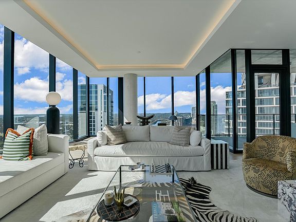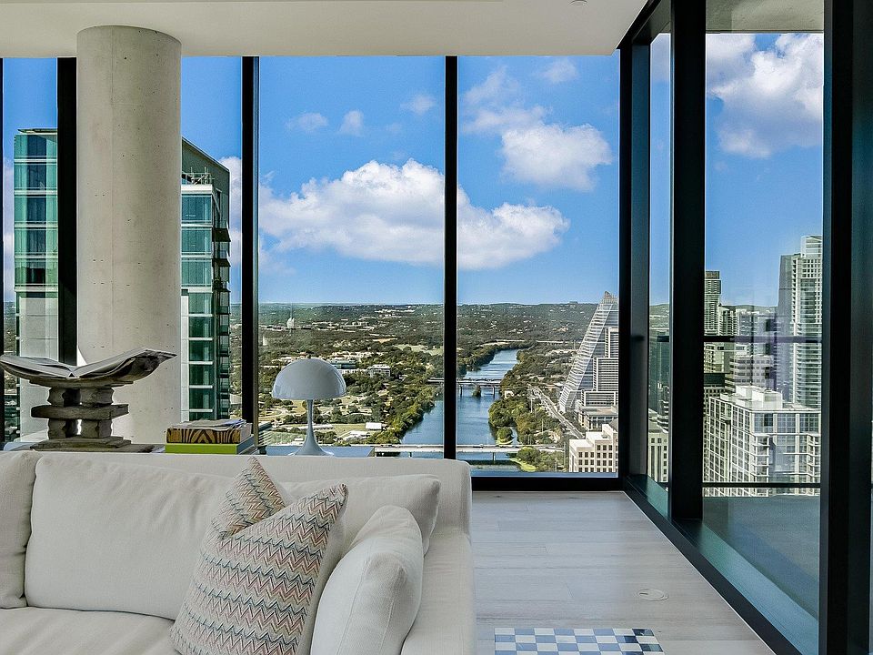 Large 3/3.5 condo at Austin's newest luxury residential tower, The Modern. Sweeping views of Lady Bird Lake, Downtown and the Hill Country. Multiple upgrades include Calacatta Monet marble counters in kitchen, quartzite counters in baths, custom closet system, custom laundry room system, wet bar with wine fridge/beverage fridge & freezer drawers. Sub-zero built-in refrigerator. Highest floor of the west facing 3 bedroom plans. The C3 layout is great for entertaining. The new and improved Rainey Street is currently being unveiled with several new restaurants and coffee shops and the new and improved Waterloo Greenway opening soon.