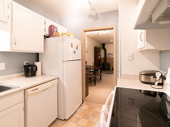 Coming available for rent November 1, 2025, this idyllic condo Unit #4 is perfectly located along the scenic trail and the creek where you'll have instant access to walking, running, biking and the best views on Peet's Hill. Inside, find warmth and ambiance with a delightful wood-burning stove, perfect for cozy evenings. Surrounded by mature trees, this is a tranquil location on a non-through street with the incredible bonus of being only 5 blocks from downtown amenities. Previous tenant gardened beside the front south-facing entrance.