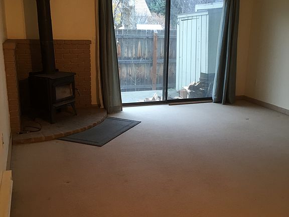 Coming available for rent November 1, 2025, this idyllic condo is perfectly situated along the scenic trail and creek where you'll have instant access to walking, running, and biking. Inside, find warmth and ambiance with a delightful wood-burning stove, perfect for cozy evenings. Surrounded by mature trees, this is a tranquil location on a non-through street with the incredible bonus of being near downtown amenities. Covered carport parking includes full storage unit with shelves.