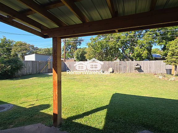 610 Dover Dr A classic red-brick ranch home with modern comforts and updates; freshly painted interiors. This home blends timeless curb appeal with practical update. Enjoy a spacious living room anchored by gorgeous leaded glass windows and a welcoming entry with stained glass details. The home features durable 16" tile in the kitchen and utility room, plush carpet in the bedrooms, neutral gray interior paint, and ceiling fans with lights in each bedroom for added comfort. An attached one-car garage and a covered patio extend the home's practicality and outdoor livability. within walking distance to Dover Elementary.