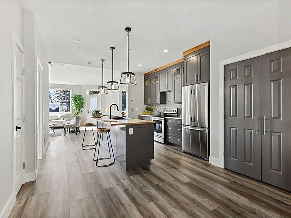 This Sundre villa offers a serene escape from urban life, surrounded by lush greenery and picturesque mountains. Situated in the heart of Sundre's vibrant community, Prairie Creek Crossing beckons with its promise of tranquil living for adults seeking a retreat or retirement haven. Step inside to discover a modern oasis designed for comfort and convenience. The open floor plan welcomes you with vaulted ceilings, creating an airy ambiance throughout. The kitchen is a chef's delight, with ample counter space, and a spacious pantry for all your culinary needs. Entertaining is effortless as the dining area seamlessly transitions into the inviting living room, providing the perfect setting for family gatherings and socializing. Retreat to the master bedroom, featuring a walk-through closet leading to a private 4-piece ensuite, offering a sanctuary of relaxation. The second bedroom can be used for visiting guest or the much needed office! Designed for ease of living, this single-floor layout eliminates the hassle of stairs, catering to adults looking to downsize without compromising on comfort. A double attached heated garage provides convenient parking for two vehicles, ensuring both practicality and security. Experience year-round comfort with in-floor heating throughout the home and garage, while exterior landscaping and snow removal are meticulously taken care of. Embrace the joys of pet ownership as Prairie Creek Crossing welcomes furry companions with board approval, allowing you to share your new home with your beloved pets. Beyond the doorstep, Sundre offers an array of recreational opportunities for outdoor enthusiasts, including hiking, fishing, camping, and trail riding amidst breathtaking natural landscapes. Indulge in quality golf courses or unwind at the local hospital, seniors club, or indoor recreational centre with an indoor pool and fitness facilities. Don't wait to embrace the retirement lifestyle you've dreamed of—seize the opportunity to live amidst Sundre's beauty and tranquility at Prairie Creek Crossing.