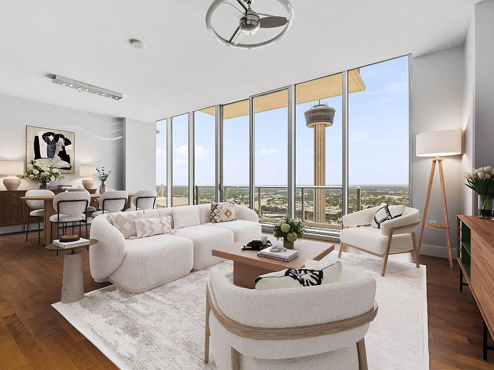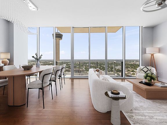 Perched on the 28th floor of the Grand Hyatt Hotel, this residence redefines downtown luxury living, pairing sleek design with jaw-dropping views of the Tower of the Americas. The spacious, open layout features two bedrooms, two bathrooms, and a sleek chef's kitchen with premium stainless steel appliances, perfect for both stylish entertaining and everyday comfort. Expansive floor-to-ceiling windows and a private balcony capture sweeping southern views, creating a backdrop that transforms every moment into an experience. Living at Alteza means more than just a home; it's a lifestyle. Indulge in world-class amenities, including 24-hour concierge service, a resort-style rooftop pool overlooking downtown, and unrivaled access to the Riverwalk, Hemisfair Park, and the city's growing collection of acclaimed restaurants, shops, and cultural experiences. This is elevated living, where vibrant city energy, unparalleled views, and modern luxury converge in the heart of San Antonio's transforming downtown.