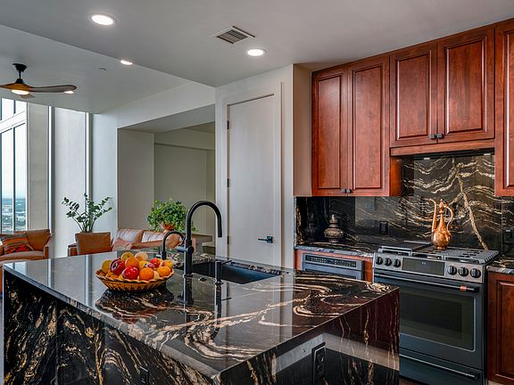 UrbanLiving Inside410 - Set above the Grand Hyatt and mere steps from the enchanting San Antonio River, this luxurious high-rise promises breathtaking panoramic views that will captivate your senses. Immerse yourself in a world of luxury with recent upgrades including sleek Black Cosmic 3cm quartzite countertops, top-tier GE Cafe appliances, and elegant lighting fixtures that illuminate pristine hardwood flooring and fresh paint throughout. Customize the flex room/den to suit your lifestyle - whether it's a cozy study, a welcoming guest room, or an entertainment haven, the possibilities are endless. The convenience of motorized window shades adds an extra touch of comfort to this impeccably appointed unit. Enjoy the indulgence of a 24-hour concierge, private elevators, and unwind by the rooftop pool, perfect for moments of relaxation. Exciting additions like the upcoming outdoor kitchen, hot tubs, and cabanas await your enjoyment. Don't miss out on the recent upgrades to Civic Park, offering a vibrant array of restaurants, bars, and green spaces for your leisure. Schedule your showing today and embrace the opportunity to make this lock-and-leave unit your primary residence or secondary getaway sanctuary. Your urban oasis awaits!