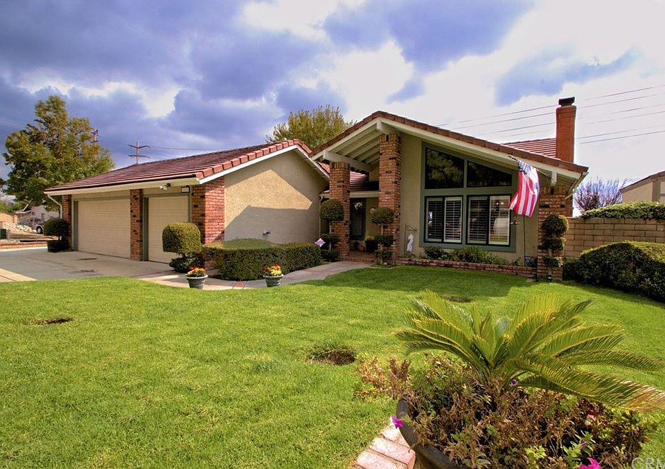 Beautiful one story home on a corner lot. This home boasts a living room and family room (both with fireplaces!) and an updated kitchen with stainless steel appliances.The den or dining room is an additional room to entertain in . The family room's sliding glass door leads to the wonderful backyard with covered patio, built in spa and bbq and grassy area. This home features 3 bedrooms and 1.75 baths. Master bedroom has a sliding glass door to go to backyard and has a 3/4 master bath. There is a laundry room and an attached 3 car garage. Parking for at least a 30 ft RV! Cul-de-sac street. A must see! Near shopping and restaurants.