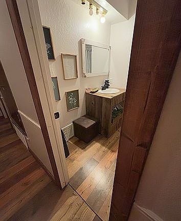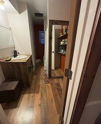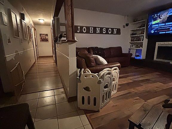 Large backyardWood burning fireplaceLarge bedroomsLaundry roomCentral heat and airGood closet spaceMetal roof
