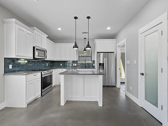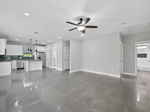 The spacious kitchen is equipped with sleek granite countertops, stainless steel appliances, and a center islandideal for entertaining or enjoying family meals. The living room boasts warm faux wood flooring and abundant natural light, creating a cozy yet modern atmosphere.