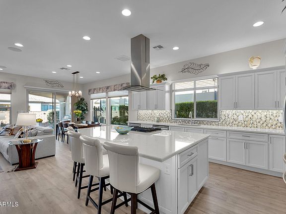 Welcome to the Good Life at Encanterra! Discover the perfect blend of luxury and comfort in this stunning Chroma model (with the optional bonus room), located in the heart of Encanterra Golf & Country Club-Queen Creek's premier gated resort community. Built just three years ago, this beautifully designed home captures modern elegance and effortless living. This two-bedroom, two-and-a-half-bath home includes a full den and a bonus multi-purpose room, offering endless flexibility for a home office, craft studio, or media retreat. Every inch of its 2,300+ square feet of living space has been thoughtfully designed with sophisticated finishes, premium materials, and a neutral palette that's both timeless and warm. Step inside and you'll find: An open-concept floor plan that flows seamlessly for entertaining and everyday living, a chef-inspired kitchen with designer cabinetry, quartz countertops, and stainless-steel appliances, spacious great room with abundant natural light and views that extend into your private outdoor retreat, loads of upgrades including premium theater sound system with ceiling mounted speakers, split primary suite for privacy and comfort, featuring a spa-like bath and generous walk-in closet. Outside, relax beneath the covered patio or host friends in the beautiful Arizona sunshine, surrounded by pristine desert landscaping and resort-inspired charm. This low-maintenance backyard designed for lock-and-leave livingenjoy tranquility without the upkeep. Living in Encanterra means access to world-class amenities and an unmatched lifestyle. Enjoy the private championship golf course, state-of-the-art fitness center, Alvea Spa, four resort-style pools, on-site restaurants, and a vibrant calendar of social and community events. From sunrise yoga to sunset cocktails on the patio, this is where every day feels like a getaway. If you've been searching for a home that reflects both style and substance, this is itmodern, sophisticated, and move-in ready.