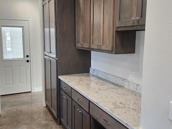Discover modern elegance in this stunning 2023-built 1,332 sq ft home, where contemporary style meets everyday comfort. Step inside and see the gleaming polished concrete floors that flow seamlessly throughout, creating a sleek, low-maintenance vibe.The heart of the home is the chef-inspired kitchen, boasting sleek gray granite countertops, stainless steel appliances that convey, and a dedicated coffee bar—perfect for your morning ritual. Adjacent utility space echoes the granite luxury for effortless functionality. In the evenings you can retreat to the spacious master suite, featuring a huge walk-in closet and a spa-like bathroom with double vanity topped in matching gray granite. Guests will love the crisp white subway tile surrounding the tub/shower combo in the bath.Unwind outdoors on the covered front porch or expansive back patio, ideal for al fresco dining or lazy afternoons. This turnkey treasure blends fresh design with practical charm—schedule your showing today!