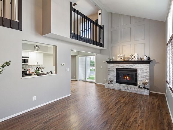 Gorgeous fireplaceQuartz countertopsHuge bedroomsCustom double-sink vanityVaulted ceilingsPrivate patioSpacious dining area