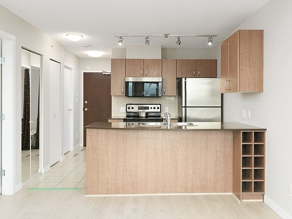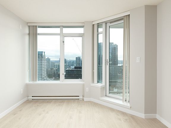 Welcome home to The Hudson, situated in the highly sought-after Downtown area. This spacious condo offers laminate hardwood flooring throughout, over-height ceilings, and expansive windows that bring in natural light and overlook amazing views of the mountains, water, and city skyline. The fully equipped kitchen features tons of cabinet and counter space, polished stone countertops, and stainless steel appliances, perfect for an evening of cooking, and hosting friends and family. Enjoy exclusive amenities as a resident of The Hudson, such as a 24hr concierge, meeting room, lounge, media lounge, landscaped outdoor courtyards, fitness centre, and bike room.
