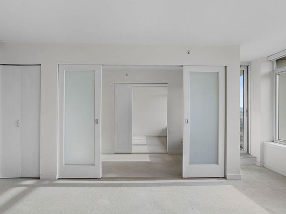 Private balconyBright one-bedroom plus denPlush carpetTiled kitchen and bathFrosted glass doors