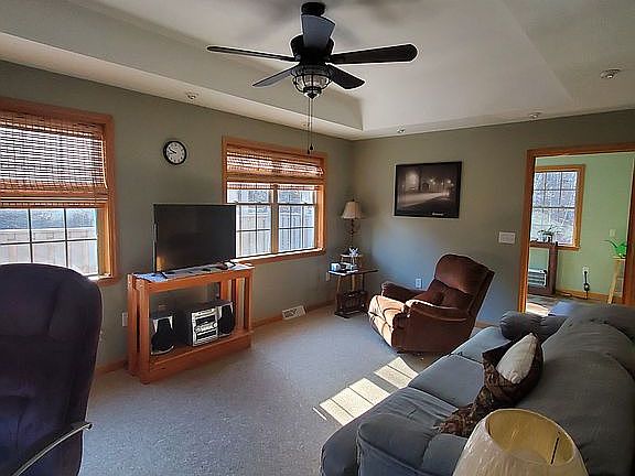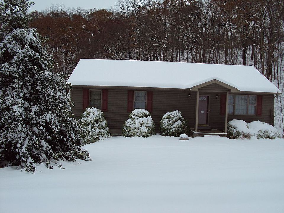 woodland green vinyl burgundy shutters rancher style with addition on back large deck addition was added about 12 to 14 years ago at that time whole house got new shingles