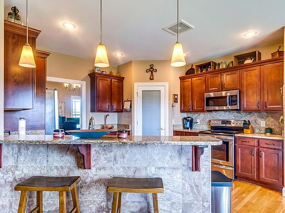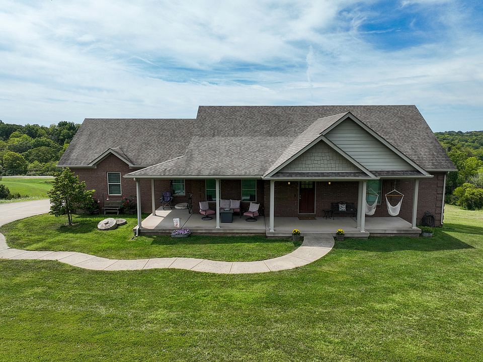 You're going to love this gorgeous brick ranch on 26.33 acres with a barn and pond. Main floor of the house has beautiful hardwood floors, a stacked stone wood burning fireplace, cherry kitchen cabinets, granite countertops and walk in pantry, huge master bedroom and bath, half bath, mud room, laundry room, dining room, great room, a covered back porch and front porch. Hot tub is under the deck on patio, full basement is larger than the first floor since the basement is under the 2 car garage and the basement is under the porch . Finally a house plan with plenty of room for hunting supplies, wood working space or just storage for adventurous buyers with lots of hobbies .The main basement has 950 sq ft finished, 697 sq ft unfinished plus over another 1,000 sq ft of extra storage space!! There is a den, two bedrooms and a full bath in basement. Geothermal heat/air