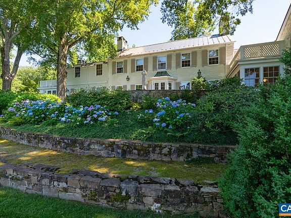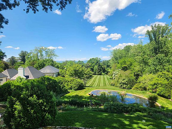 Lovely stone residence in Farmington Country Club with sweeping Blue Ridge Mountain views. Built in 1930 with tasteful additions, this charming and elegant house offers 5 bedrooms, living room, dining room, chef’s kitchen, study, and an orangery. The quiet private 5 acre property includes a two-story guesthouse with kitchen and 1.5 baths, a separate, second, guest house or office with full bath and fireplace, a large, detached garage, pool, koi pond and garden sheds. There are stone terraces walkways, garden walls and fountains. The professionally landscaped grounds with native plantings offer unusual privacy with convenience to town, UVA and the many amenities of the Club: including golf, tennis, pool, fitness center, and fine dining. Primarily one room deep the residence has excellent light and exhibits fine details and great craftsmanship throughout. This is a special property, comfortable, elegant and to be treasured. Close to the Club. .