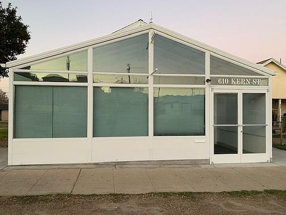 This cute 2 bdrm 1 bath home has off street parking, newer solar on roof, a garage/green house, includes a gas stove, and has an all glass front office thot could be used as a 3rd bedroom, it is wheelchair accessible, & includes its own public restroom! If you're looking for prime office space, look no further, this property is located at 6th and Kern St. You'll enjoy the mini split ac and heating units in every room, including the kitchen & office, upscale dual pane windows with room darkening wood shutters, lots of cabinets in kitchen for storage, & a raised wood deck right off the back door.