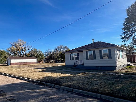 This charming 1,832 square foot ranch-style home is located on a spacious corner lot in the heart of Fowler, KS. Recently updated, it features new flooring, fresh paint, and a beautifully renovated bathroom. With 2 bedrooms and 2 bathrooms, this home is a must-see! The exterior boasts freshly painted metal siding, a composition roof that's under 2 years old, and newer vinyl windows for added durability and energy efficiency.