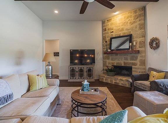 How Soon Can You Move? Gorgeous 4 bedroom custom home almost new on 2+ private acres with all the bells & whistles. Flexible floor plan with optional bedroom or game room with full bath & 5th bedroom or study off foyer. Spacious living with open kitchen & large breakfast bar looking out at the covered porch with outdoor fireplace, pool with spa & waterfall. Quality upgrades throughout with high end stainless appliances, fixtures, hardwood floors, granite & more. Why build when you can buy this home?